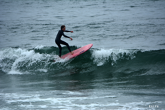 Last week while I was shooting the first pulses of OMAR I was standing in the wet sand at 10th Street. It was getting late, the sun was already setting when I spotted a girl walking towards me from 8th street. It took me a few minutes but the camera around her neck, and the Surfing With Smiles hat on her head, I knew exactly who it was. "GRACE! I can't believe it's you!" And she instantly recognized me. "Ralph, of course you would be here taking photos of the surfers!" We were both so happy to see each other.