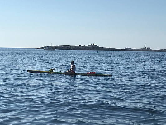 Local NH resident Gary Ritter made the paddle on September 4th, 2020. He paddled 14.2 miles in 3:31 hours total paddle time. 1:34 on the way out. Brutal headwind chop on the way back. (the wind was offshore) Gary said he was "Feeling good and pretty psyched. Raised over $3k for charity water. Considering that and the paddle itself, one of the best experiences. Thanks again for posting the link on your blog Ralph."