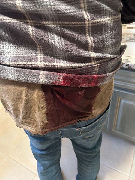 But when I had Cory take a look, it was obvious that it was blood. Lots of blood. So much blood that I really thought I really hurt myself bad.