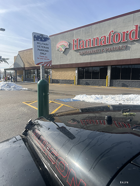 Pulling up the Hannafords the other day I noticed a new sign closer to the entrance for Veterans. How about that? They have these at Home Depot as well. I suppose you would need a veterans plate to park here. Same with Home Depot. I am forever impressed with what businesses do for veterans these days. Thank you.