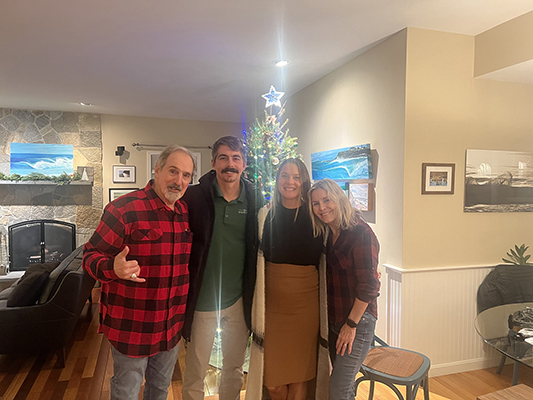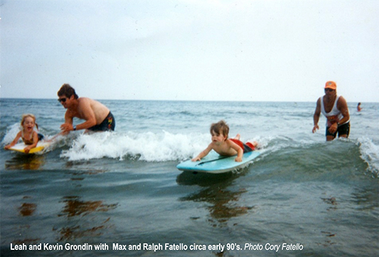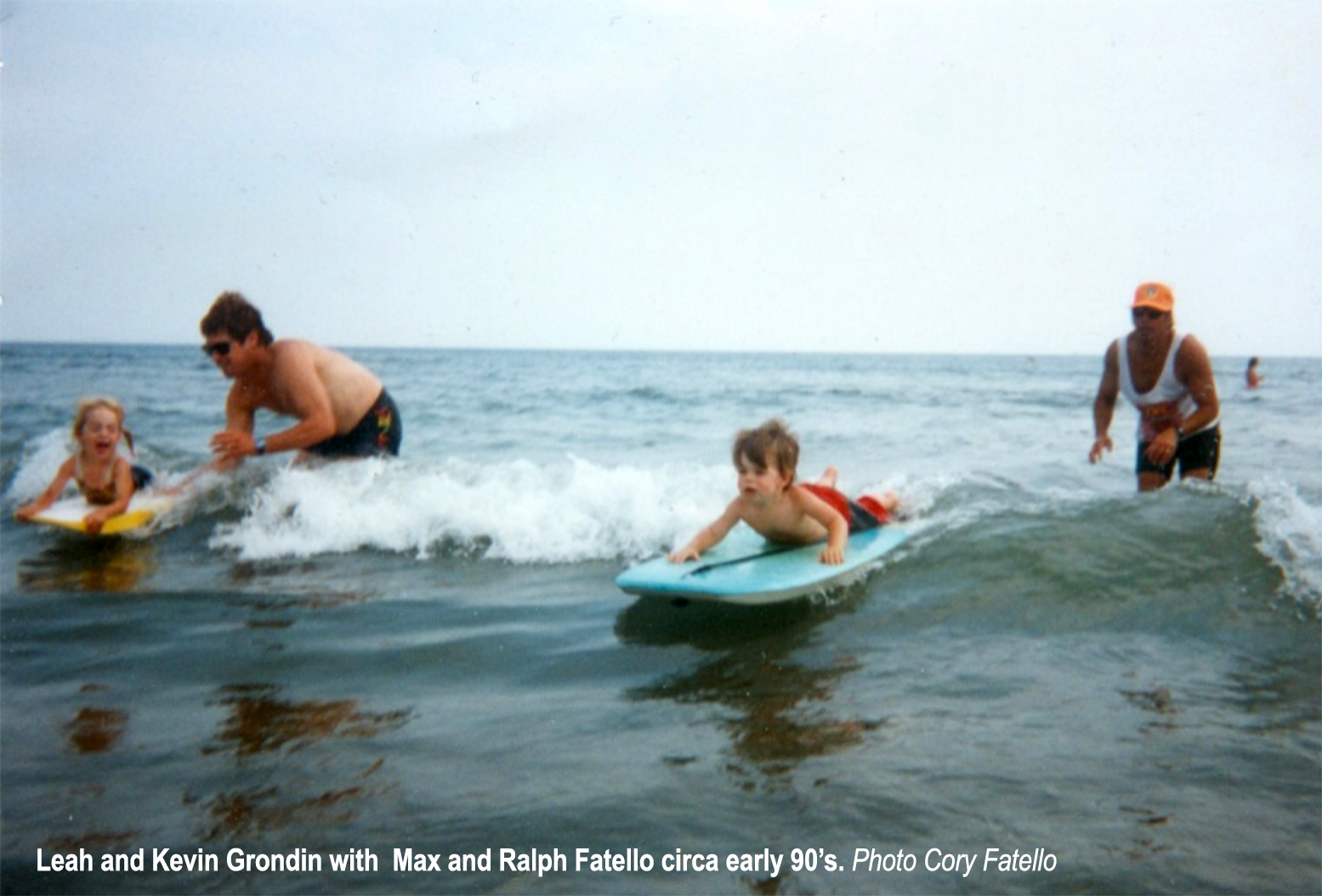 That's Leah on the left with her dad Kevin and me and Max on the right. I do believe these are the first images of the Fatello kids and the Grondin kids catching waves. With Max now becoming an expectant dad next May, I thought this would be a good time to bring this image out into the public eye. And I can't wait to see the kind of father Max will become. All my kids are great parents. Same with my two sons in laws. They are all exceptionally loving and caring parents. Photos c/o RALPH
