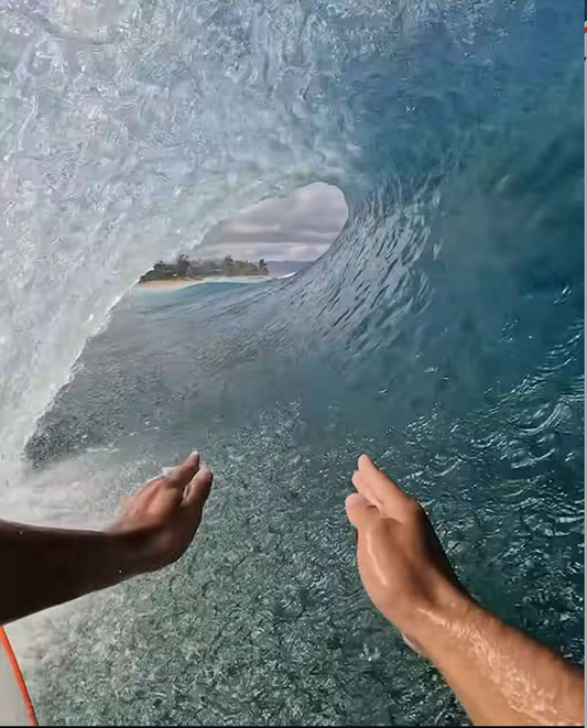 (Above) Kainalu Nichols is living the dream in Hawaii on on so many levels. He is not only surfing at much higher levels than when he was living here, but he's also filming his own rides like a pro. Damn Kai. I don't know a single surfer who wouldn't want to not only get a wave like this, but ten to actually film yourself riding it. Photo by Kainalu Nichols