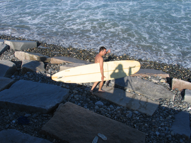 I hope you all had a chance to get out this week. There were several days of waves, and some of those days were pretty dam fun. I mean it's summer people. The water actually warmed up from Rhode Island to Maine. It was one of the best weeks all summer. The surf and conditions on Saturday and today were typical New England varying conditions. From hard offshore winds and overcast skies, to hard onshores, to a complete turnaround sunny glassy conditions. And if that wasn't enough, the water temp rose about 10 degrees. All in the matter of 10 to 12 hours. Like I said. It was typical New England. Hey how many of you have been watching the HBO series John From Cincinnati? We've been watching it and I have to say, I really have a hard time warming up to it. Yet, I watch it every week. Mostly due to the fact, that I hope the writers will finally let us on, as to what the hell is happening. It is just so whacked that I can't make heads or tails of it, from one week to the next. I know now, that it is loosely based on the lives of Herbie Fletcher and family. JFC is so out there that it almost seems like I'm watching the old Outer Limits or the freaking Twilight Zone. The surfing (as limited as it is) is just OK. They could use more of it in my opinion. But I'm sure the writers are thinking the opposite. But it's the characters that really bother me. They are all totally whacked out. My favorite part of the show is, the opening credits with the old grainy surf footage from the 50's -60's era. It's cool to see that. But not cool to see surfers depicted (once again) as a bunch of loser assholes. Not that there aren't any of them. Lord knows there are plenty. But seriously, wouldn't you all just like to see a Hollyweird movie about surfing that does not make us out to be a bunch of total losers? I mean just once? The big movie moguls have never gotten it close when it comes to Surfing. The only movie that maybe close is Big Wednesday. That was sort of a cool storyline about being a surfer back in the 60's-70's era. The rampant wild antics and the war in Vietnam. It was believable. That starred Jan Michael Vincent. Who ended up being a real life loser. Gee, how ironic. That movie just recently became available on DVD. The others as of recent times are a complete waste of time. The North Shore. Point Break. Johnny Tsunami. All a big waste of time and money in my eyes. Here's something that is not a waste of time or money. The Continuing Fund for the Late Surfer Danny Miller's young son Landon can be made to The Landon Miller Fund through ANY Citizen Bank. Or send your donation to: The Landon Miller Foundation 83 South Road North Hampton, NH 03862 Click below to see Danny Tribute or see Danny Surfing Tribute to Danny. North By Northeast Remember