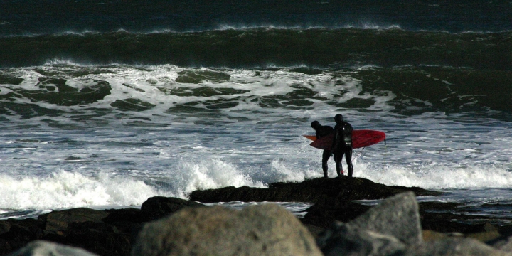 Trick or Treat two surfers negotiate the step off and paddle routine