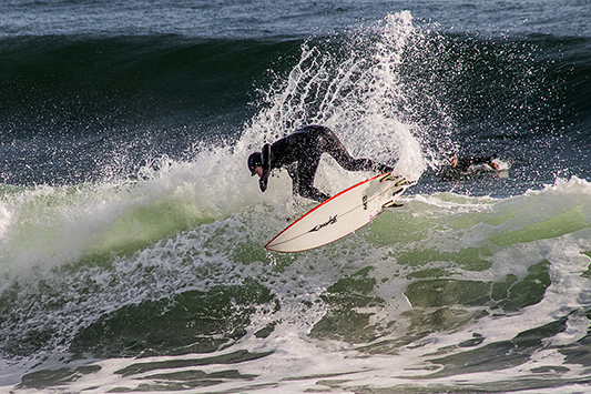 (Above) This is a well timed rebound off the breaking section of the wave. October 14th, 2025 Photo by Ed Moran