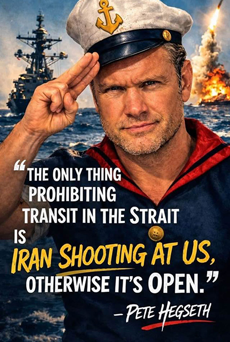 He and his orange faced buffoon boss came up with this name change. Again like all the other bold name changes. The Gulf of Mexico is now the "Gulf of America." The changing of the John F. Kennedy Center for the Performing Arts to the "Trump Kennedy Center". It's all just beyond embarrassing. But none of the cult members blink an eye. This illegal war with Iran will go down in history as one of our biggest blunders. Ever.