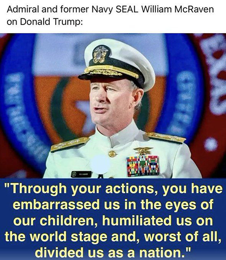 There's no better way to describe our 47th President. Admiral McRaven said it all right here. You got nothing backing you Your Highness. The game is starting to to unwind.