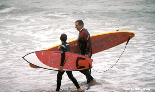 This is a photo of my son Max and I after sharing a few waves at the Wall. I miss these days. But I have fond memories of them.