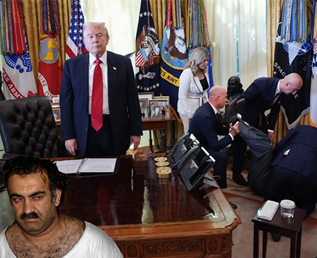 But who knew that our boy Khaliddy was also there? Not me. I saw old Worm Brain RFK Jr run out of the room. I swear this administration is like a three ring circus. A ship of fools. But this photo? This is downright creepy. That big Red Tie swaying in the breeze. That's some creepy ass shit right there.