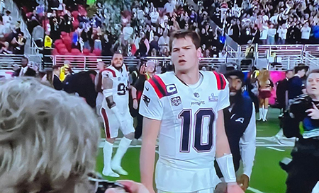 This is Drake Maye at the end of the game. His post game interview was heartbreaking to watch. He was all choked up feeling like he let the team down. I mean the kid is only 23 years old. He was the second youngest QB to ever play in a Super Bowl. And although they lost, they proved to the world that they are legit. And they're going to be around for a while.