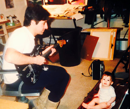 Me playing my Black Strat to baby Gabby in 1990. This was taken at our apartment in Beverly MA. I remember this like it was yesterday. My little Gabby Girl!