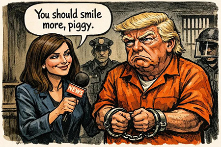 I absolutely LOVE This. Being a cartoonist myself, I have to admit, this is a really good one. A caricature of CNN's Kaitlan Collins slamming the Orange Turd with his own words. Brilliant art work and commentary.