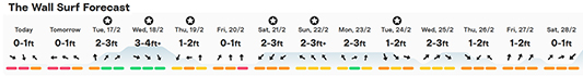 There were overhead waves on 2-2-26 and shoulder high on 2-8-26
